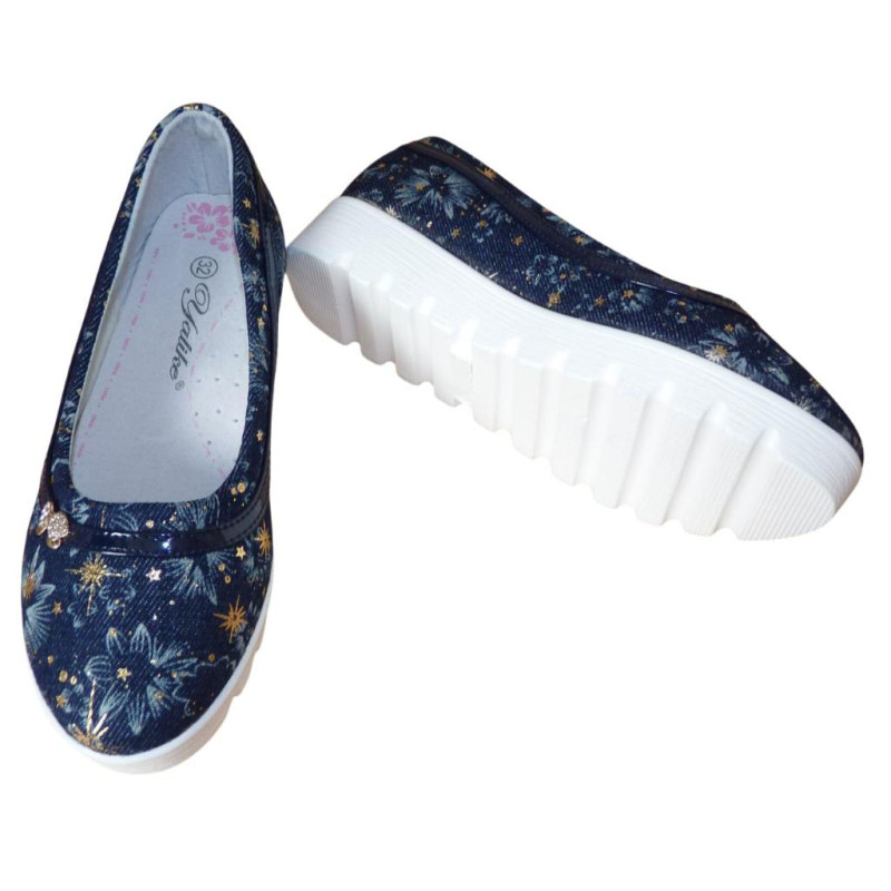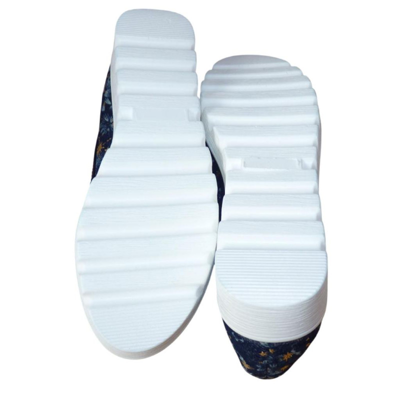 Основной цвет – темно-синий (с голубым и золотым рисунком), подошва - белая.