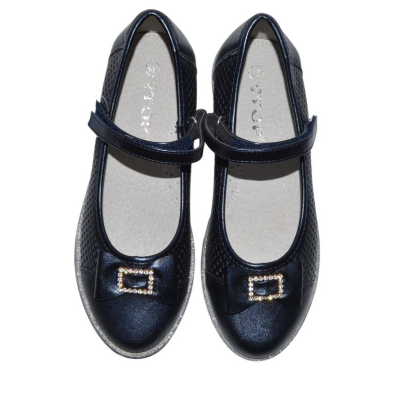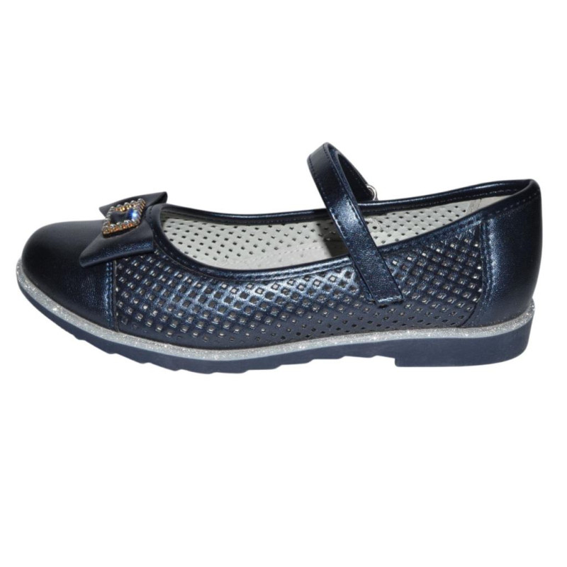 Цвет - темно-синий, отделка на канте подошвы серебристая с блестками.