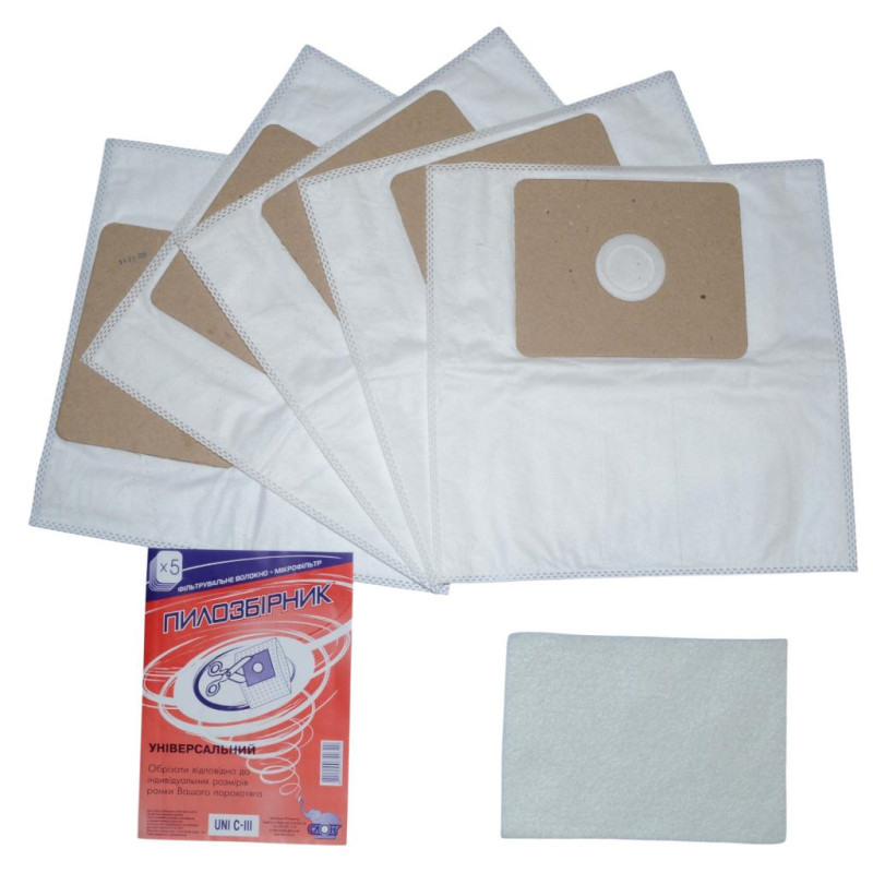 В каждой упаковке - 5 мешков и сменный универсальный фильтр в подарок.