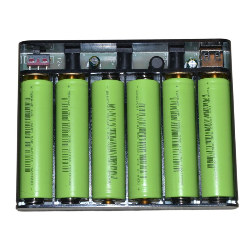 Внутри установлено 6 НОВЫХ аккумуляторов TerraE INR 18650 30E, каждый с РЕАЛЬНОЙ емкостью около 3000 мAh.