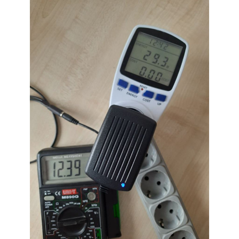 По нашим замерам этот блок питания выдает немного повышенное напряжение по сравнению с обычными 12В блоками. Поэтому он хорошо подходит для некоторых mini UPS, которым для нормальной зарядки аккумуляторов требуется входное напряжение в диапазоне 12–13В.